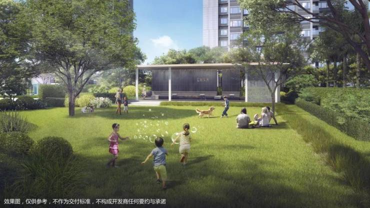 以现代简约的建筑语言,与海上田园、冰雪乐园链接观景动线,打造7大全周期活动景观配套+9大主题架空层,树立片区独特的现代生活美学复合型无界公园社区。