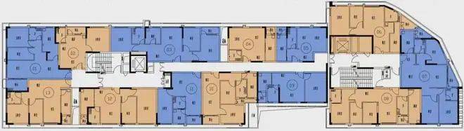 项目首层包括商铺和入户大堂,2层是商业,3-4层是企业总部写字楼,5层是社区公配,6-21层是住宅,2-5层的电梯与住宅的电梯是分开设置,不会相互干扰,住宅面积约70-104㎡两到三房为主,合计154户。