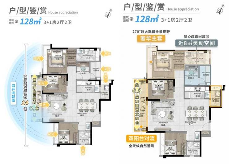 4、建面约128㎡3+1房2厅2卫(竖厅)