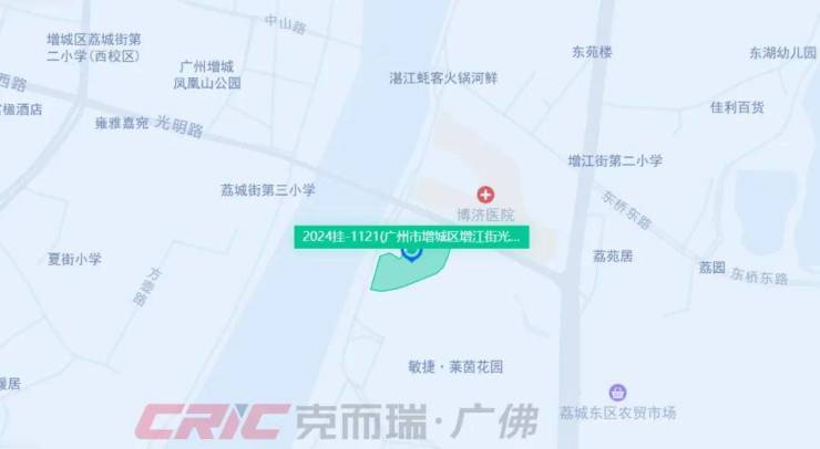位于增江街道内,与增城行政中心荔城一江之隔,具备江景资源,地块右侧为人民桥,未来或将受到噪音影响。