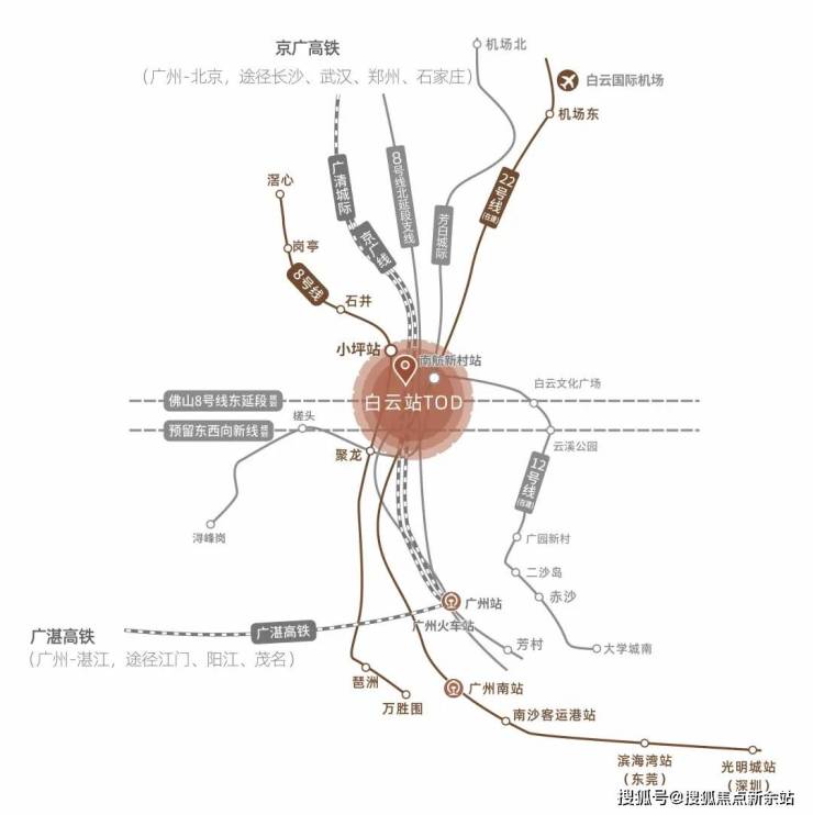 广州白云站,规模约263万㎡,体量4倍于广州南站,帷幄“国际交通枢纽湾区门户”主引擎,白云站TOD链接全国。