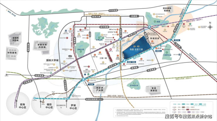 项目与3号线龙城广场站、南联站双地铁口直连,3、14、16、21、31号线五轨接驳,且紧邻城市主干道——龙岗大道,交通出行十分便利,瞬时贯汇全城。