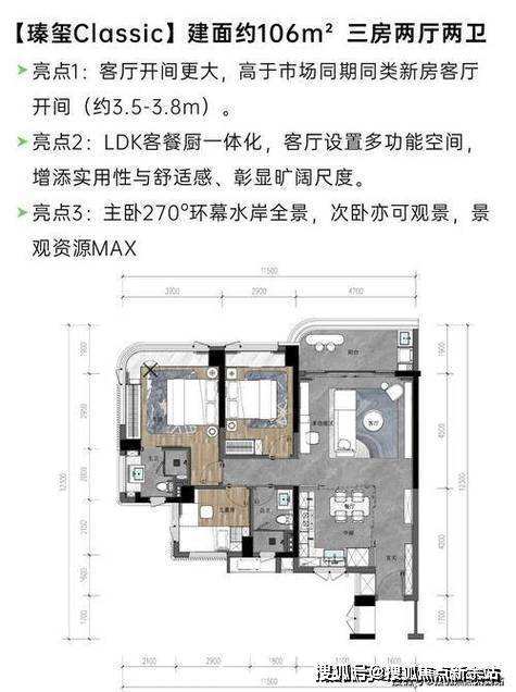 丰富的户型选择:前海瑧玺提供了多种户型,包括建面约106㎡的3房2厅2卫等,满足不同家庭的居住需求。