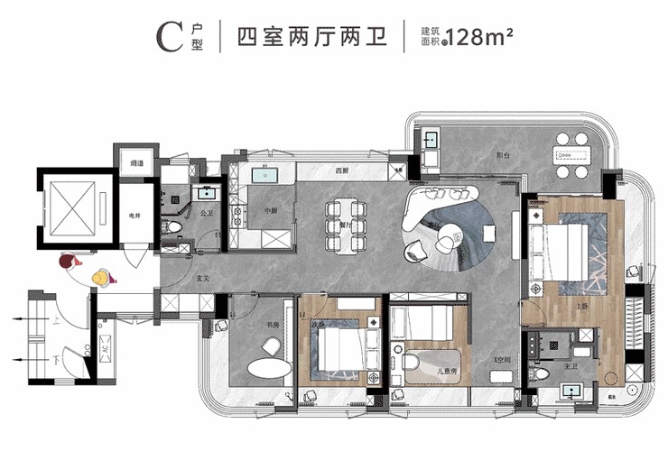 户型设计:前海瑧玺水岸会馆规划有106-128平方米的3-4房户型,满足不同家庭的居住需求。