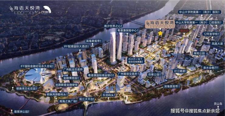 项目东侧为IFF国际金融论坛、广交所、南沙世界之心、金融创新中心等地标性建筑为代表的金融地标集群,与项目“147米”高度住宅地标,遥相呼应。