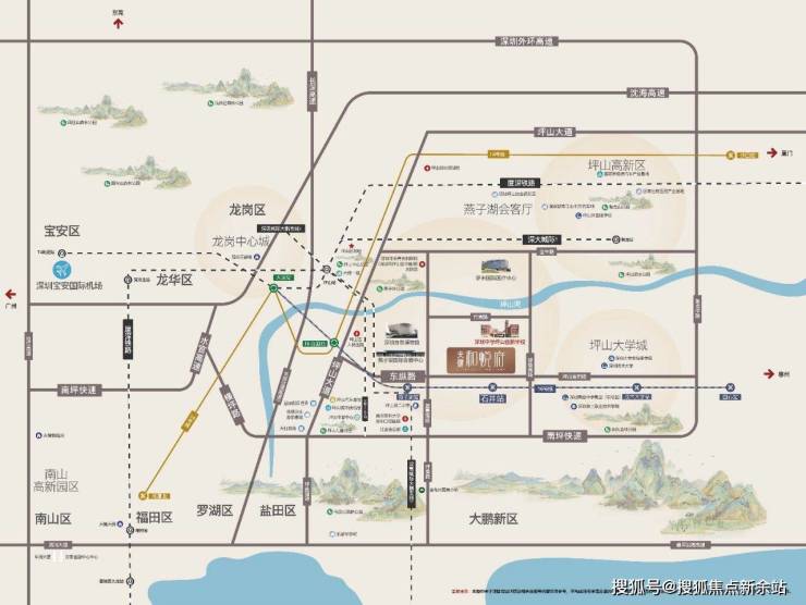 2城轨:深大城际坪山站约4KM(在建中)、近深惠城际大鹏支线,通达大湾区。