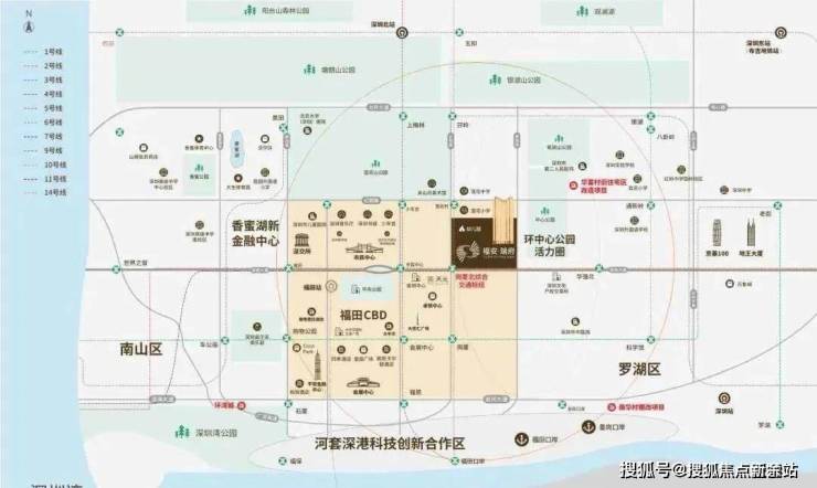 市政配套集群:市民中心、深圳中心书城、深圳音乐厅、少年宫、当代艺术中心、关山月美术馆、深圳广播电影电视集团等市政文化配套环绕。