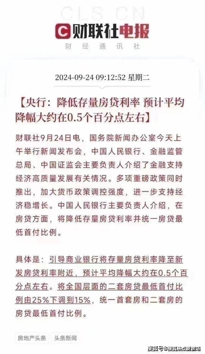 (3)降低存量房贷利率,平均降幅0.5%;引导商业银行将存量房贷利率降至新发房贷利率附近!