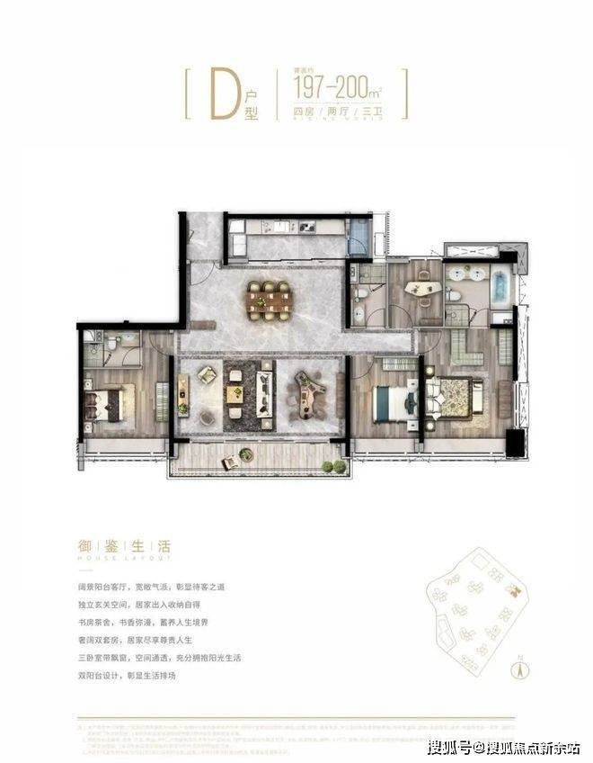 建面约103-200㎡宽境名邸,室内空间尺度阔绰,套房级主人空间,超宽采光观景面,饱览一城光景,传承世代家族信仰。