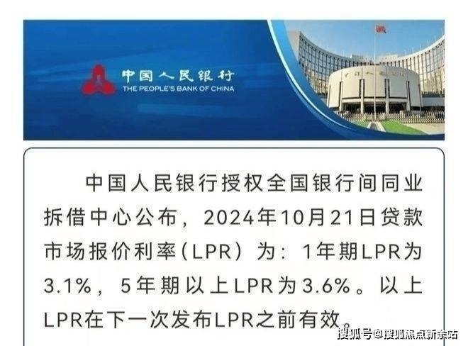 2024年10月21日贷款市场报价利率(LPR)为:1年期LPR为3.1%,5年期以上LPR为3.6%。
