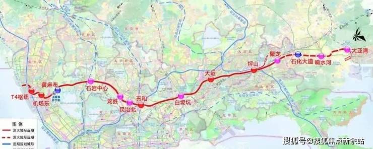 全线设地下站11座,分别为T4枢纽、机场东、黄麻布、石岩中心、龙胜、民治北、五和、白坭坑、大运、坪山、聚龙,预计 2026 年建成后,坪山至深圳机场最快仅需 40 分钟