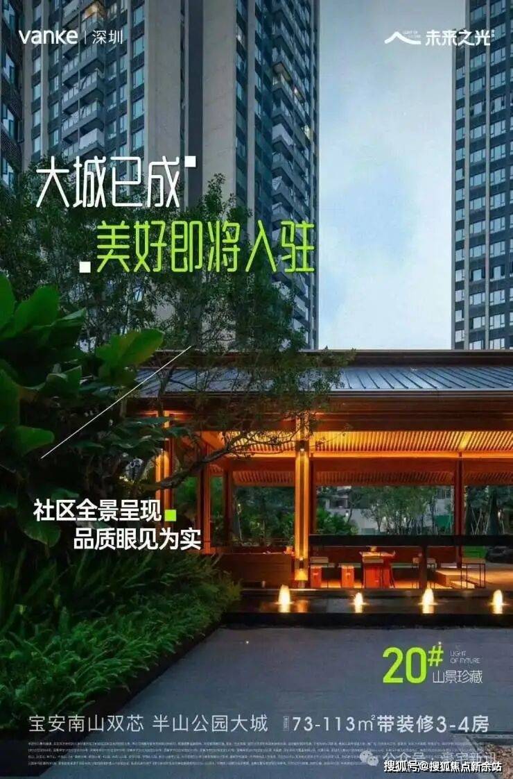万科未来之光是万科集团在深圳宝安尖岗山片区打造的高端住宅项目,总建筑面积约30万平方米,规划户数2466户,涵盖73-125㎡三至四房精装产品,容积率仅2.91,是深圳西部罕有的低密度生态社区。项目定位为“双核(南山+宝安)辐射下的城市精英居所”,依托尖岗山片区豪宅基因与自然生态资源,瞄准500万-1000万预算的刚需改善客群及资产配置需求。