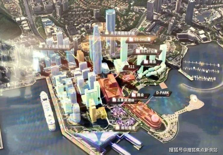 鼎级配套:约170万m²未来之城(约61万m²商务集群,含约380m超高塔尖商务总部+约46万m²滨海商业,含K11亚洲旗舰商业体、D-park等+约39万m²国际滨海社区+6万m²文化艺术中心+约8万m²五星级酒店+约4.5万m²太子湾国际学校、国际医院),一湾三坊城中城,滨海生活时代领地。