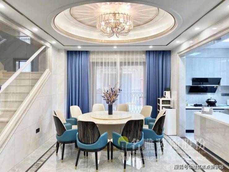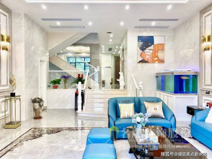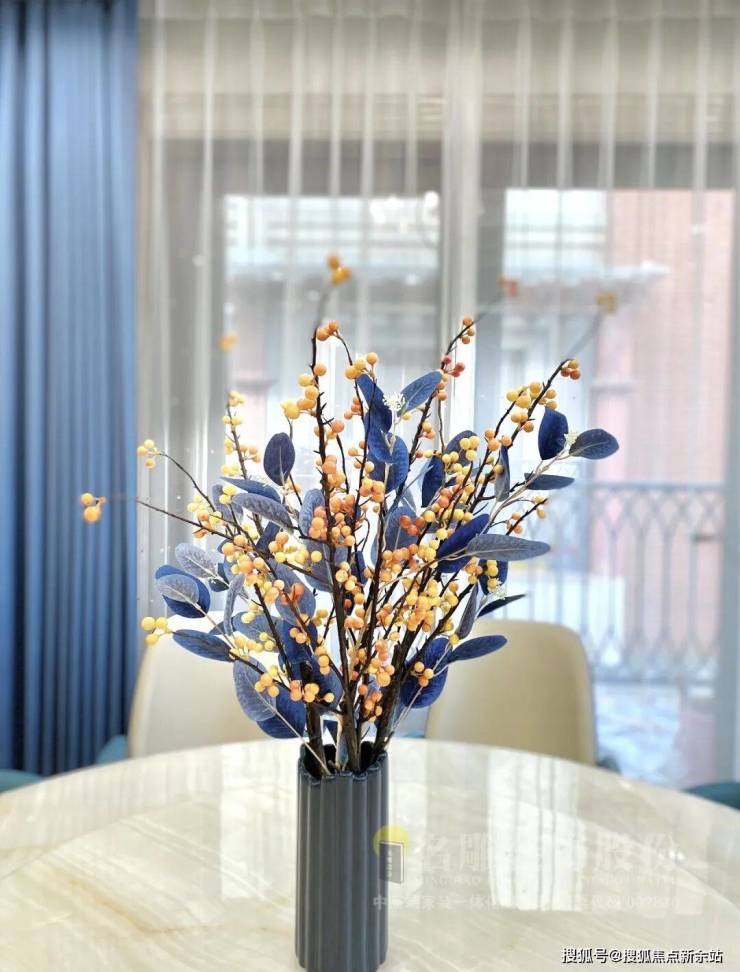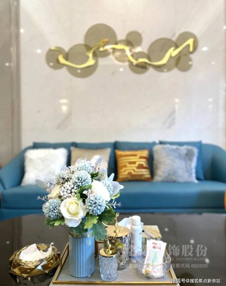 除了元素的和谐交融,住宅的配色也是深浅相宜、冷暖平衡的。浅浅的灰与白配成两大底色,让空间流淌着柔与雅的气息,跳跃的孔雀蓝与稻草黄,打破素净的同时勾勒出层次感。