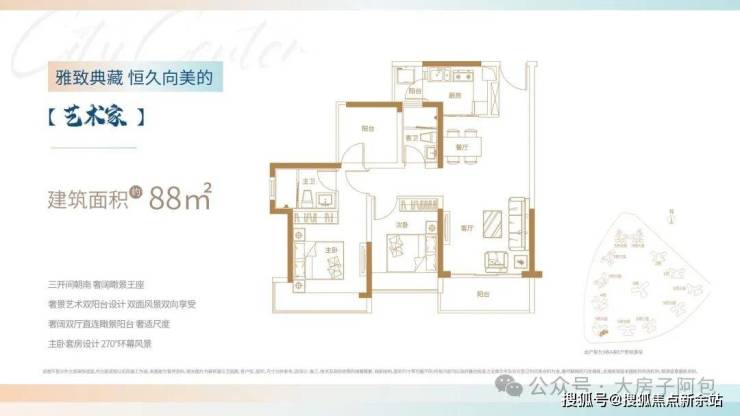 2梯3户奢居梯户比,奢阔楼距,朝向、景观、面积层数等追求极致平衡,户型空间厅房方正实用、明厨明卫、动静洁污分区明确,配置储存空间,多数户型配置入户花园。