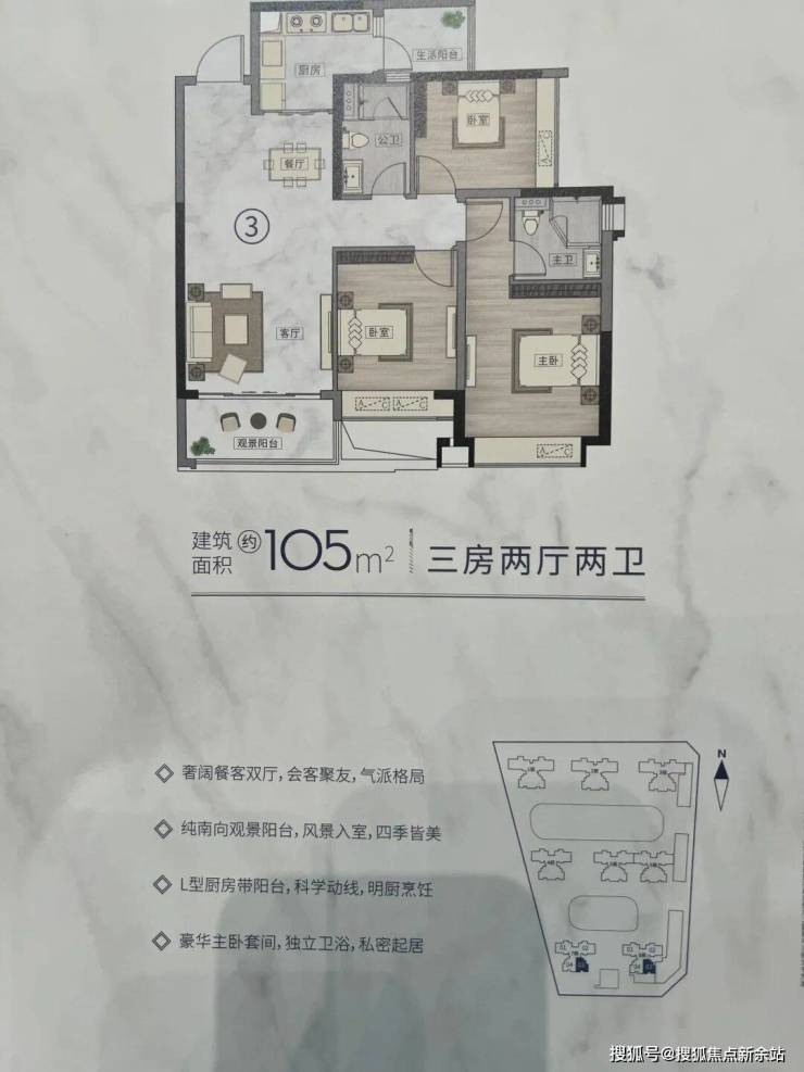 - 108㎡三房:三开间朝南,LDKB一体化,主卧套间,实用率约78%
