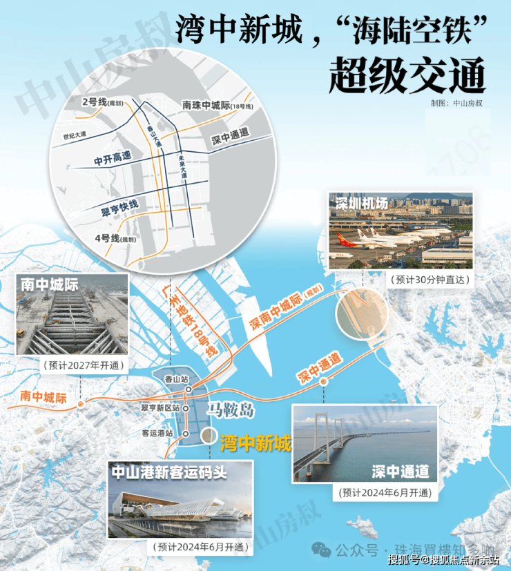 ③南中珠城际18号线(建设中):规划经过马鞍岛联通预留翠亨新站,未来3站到南沙,一线连通广州-马鞍岛-珠海。