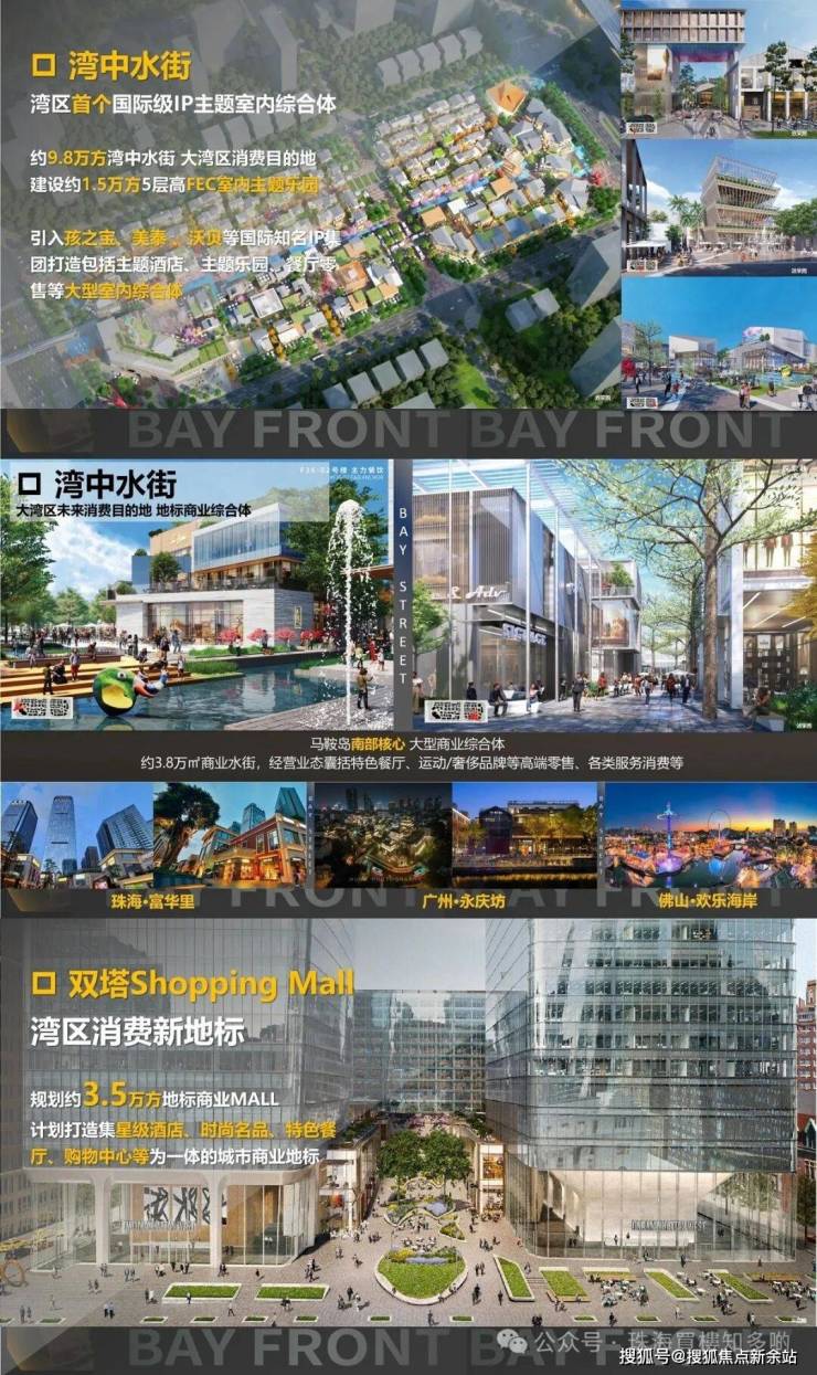 建筑面积约 9.3 万方商业水街及3.5万方地标商业MALL,其中水街引进孩之宝、沃贝、美泰等世界知名IP集团,共同打造湾区国际级IP室内主题乐园FEC,带来巨大客流和消费力的同时也推动项目周边旅住酒店、休闲娱乐、品牌餐饮等产业发展。