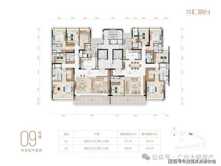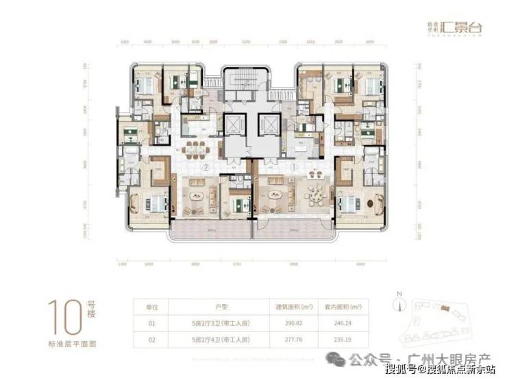 项目由14栋12层小高层组成,产品涵盖123-352㎡三至五房,共8类户型,户型实用率约82-84%