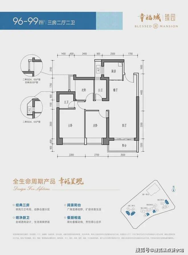 96-99㎡ 三房两卫: