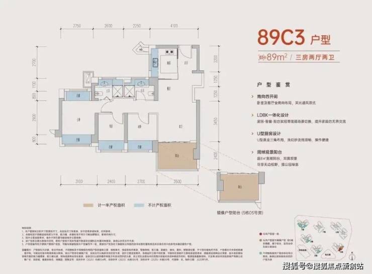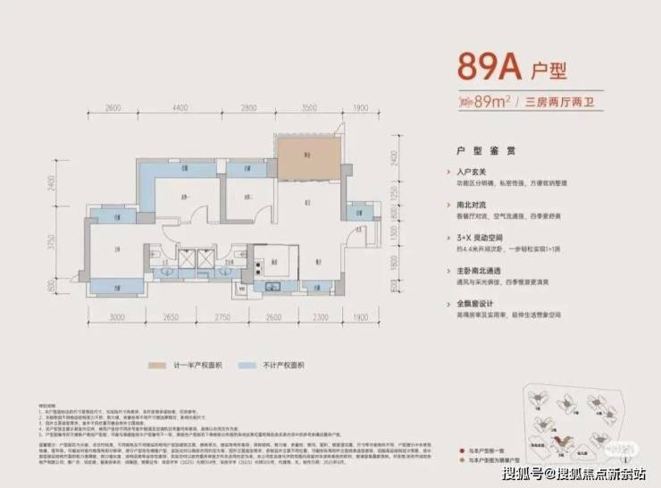 89㎡三房/3+1房两卫:有竖厅和横厅两种选择。部分户型可通过改造设备平台实现“3+1房”的灵活布局,得房率在96%-105%之间,赠送率最高可达27%。