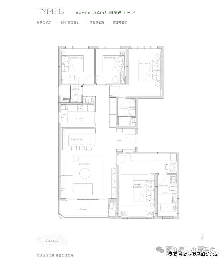 约37万㎡全龄社区,产品涵盖145-315㎡三至五房,专梯专户,享有私家电梯厅,出入更具私密性
