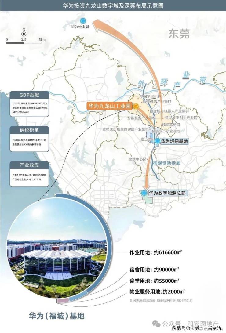 世界500强华为进驻龙华,建设建面约76万平巨无霸产业用地,完成全产业链布局,未来形成对上下游企业及高精尖人才的虹吸效应,预计吸纳至少3万名员工。