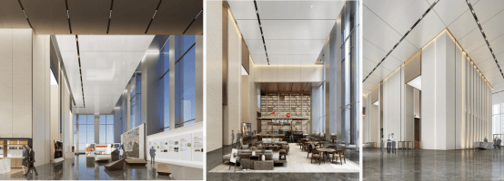 一般市场甲级写字楼层高10米左右,面积不足1000㎡,本项目T1栋约187米云端国际办公写字楼,商务大堂独具约15米挑高中空、约1500㎡奢阔商务大堂,匹配世界级办公体系。