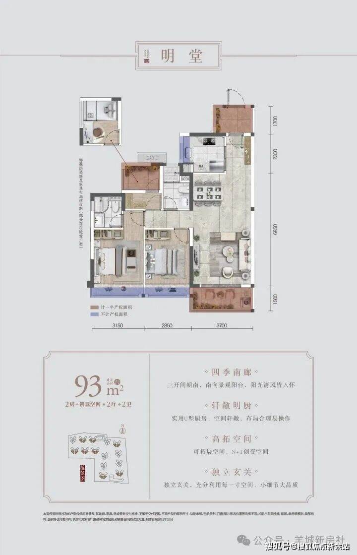 项目采用全南向布局,容积率仅2.14,是大沥罕见的低密度社区。户型涵盖89-134㎡三至五房,使用率高达90-98%,领先市场3-10%。如93㎡三房实现三开间朝南、南北通透;111㎡四房配置南北双阳台;134㎡五房则拥有南北双阳台大通厅,6.6米南向景观阳台等设计。精装交付采用国内外一线品牌,超2万L收纳空间(约300个20寸行李箱容量),搭配建发物业国家一级服务,实现“恒温、恒湿、恒氧”的智能居住体验。