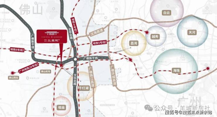 建发·德信·三堂院位于灯湖中轴文华北路旁,地处广佛黄金走廊核心。项目紧邻广州核心主城区,通过广佛新干线15分钟接驳广州环城高速,30分钟直达荔湾滘口,40分钟通达珠江新城。地铁方面,规划中的广州28号线可2站芳村、6站琶洲,佛山5/8号线双地铁交汇,项目距离沥西站直线约800米,未来可5站祖庙、8站荔湾,形成“地铁+快速路”立体交通网络,实现广佛高效通勤。