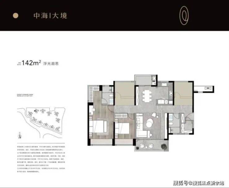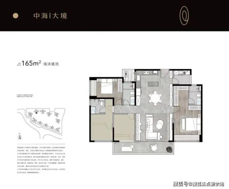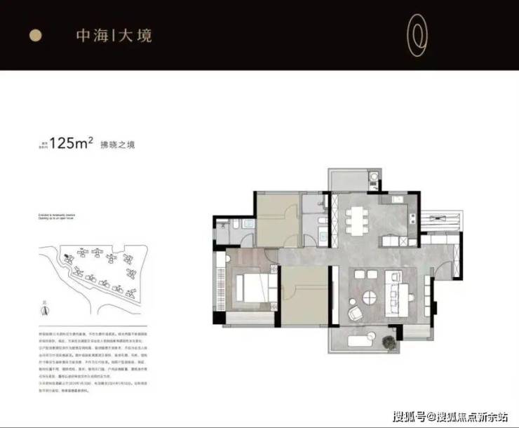 125㎡户型延续了三房设计,在储物空间上做了优化,南向阳台连接客厅,采光效果较好。中海大境售楼处电话: 400-832-5521