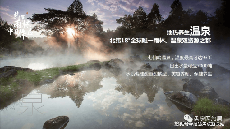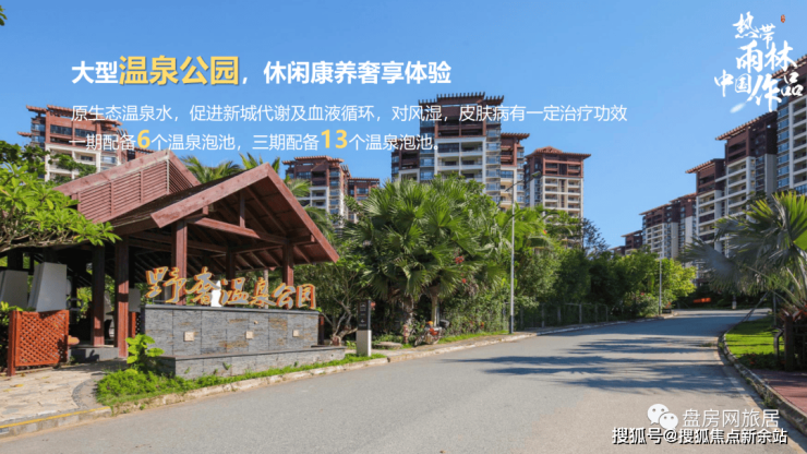 七仙岭的温泉闻名遐迩,是全海南岛最大的温泉之一,出水温度最高可达93℃,温泉水质属于偏硅酸重酸钠型,具有美容养颜、保健养生的功效。对于风湿性关节炎、痛风、心血管疾病、皮肤病都有不错的疗养功效。项目概况:项目概述:项目总占地2000亩,分三期开发,占地500亩,一期均全部已售罄总建面:10万方绿化率:35%车位比:3:1在售:二期68.3亩,包含康养公寓、花园洋房、联排别墅、双拼别墅;三期101亩,包含高层、湖景洋房产品类型:小高层住宅、洋房、商铺、康养公寓