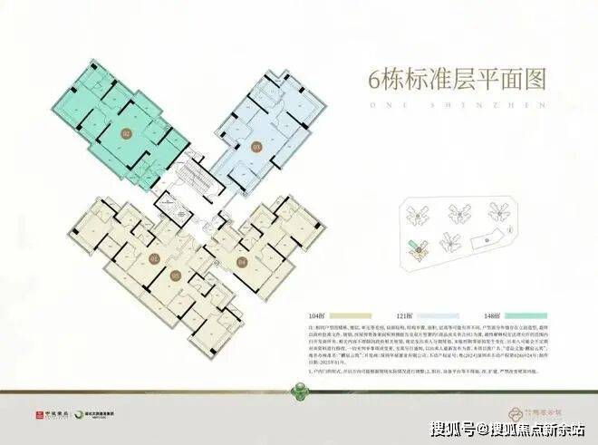 建面约121㎡的3房为横厅通透布局设计,阳台开间约6.3米,主卧、次卧带L型飘窗,玄关、厨房、卫生间带全景飘窗,户型采光、通透性较好。