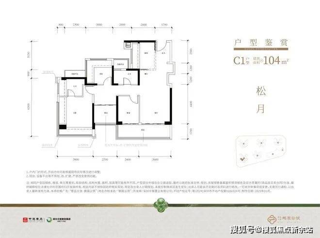 主力户型是104㎡的产品,带10.2㎡的阔景阳台,双阳台、双设备平台设计,加上主卧、书房L型阔景飘窗,户型使用率颇高。