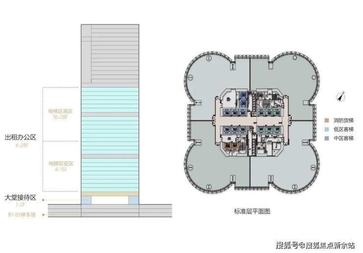 【电梯数量】共19台,客梯:低区、中区各6部、消防梯:2部、转换梯:2部