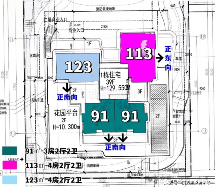 91㎡的3房2厅2卫,折后总价599万/套,折后单价6.58万/㎡。