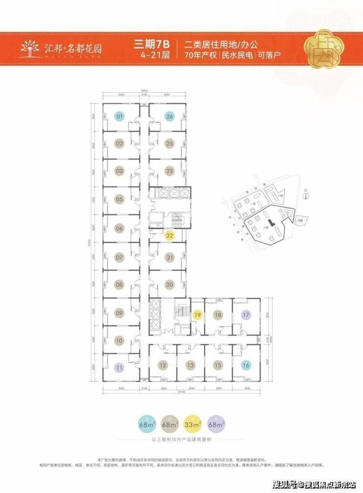汇邦名都花园【70年产权商务公寓】,在售户型和价格: