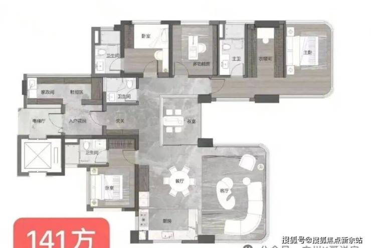 【澜序丨建面约141㎡全景舱户型 五空间两厅四卫】