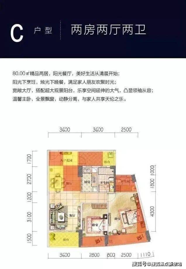 80.00㎡舒适两居,阳光餐厅,美好生活从清晨开始;阳光下烹饪,烛光下晚餐,满足家人朋友欢聚时光;宽奢大厅,搭配超大观景阳台,乐享空间延伸的大气;宽敞主卧,独立观景阳台,动静分离,与家人共享天伦之乐。