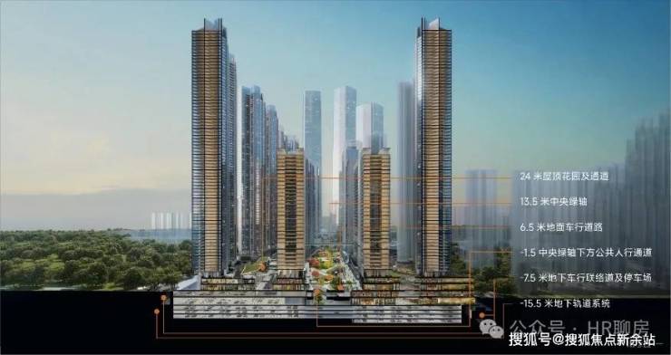 六重立体城市规划释放空间想象,构筑无边界共享大城;约1.2公里中央绿轴,打开生活场域;架空层约30万m2空中花园及约3.5万m2泛会所,业主私享休闲娱乐空间;首创50米空中连廊(规划中),创想无限可能。