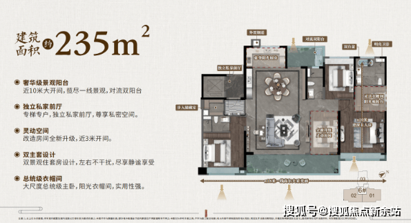 保利珺悦府提供建面约118㎡至235㎡多元化奢居产品,满足不同家庭需求。户型设计注重空间利用率与功能性平衡,全明通透格局搭配LDK一体化客餐厅空间,营造极致舒适感。143㎡户型首创6米大阳台设计,兼具景观与采光;235㎡奢阔平层采用双主卧布局,打造总统套房级居住体验;118㎡轻奢户型具备灵动改造空间,实现“可房可厅”多重生活方式。每一处空间都体现出保利对于居住美学与生活细节的深度理解。