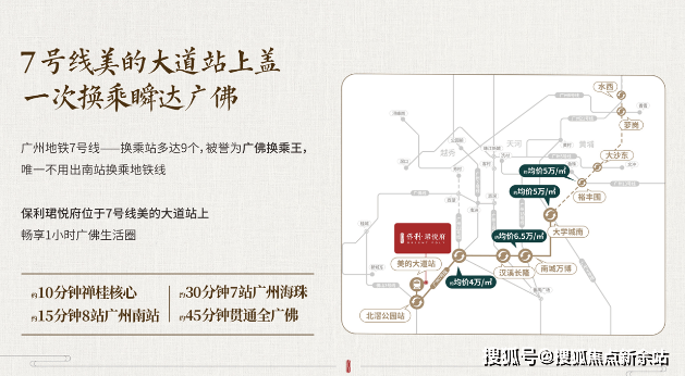 项目紧邻佛山地铁7号线美的大道站D出口,是北滘唯一真正意义上的地铁上盖豪宅项目,实现家门口出行即地铁,轻松联通广佛双城。除轨道交通外,项目还坐拥广佛高速、广明高速、广珠西线等多条城市主干道,快速通达广州南站、佛山新城、千灯湖等区域。立体化交通体系助力业主高效出行,形成真正意义上的半小时生活圈。对于商务人士而言,无论通勤还是休闲出行,保利珺悦府都可满足高效、便捷与舒适的出行需求,畅享湾区一体化交通红利。