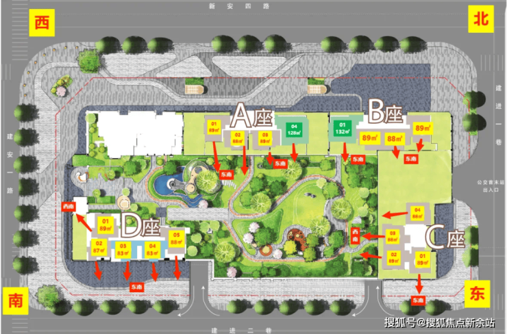 面积:89㎡3房1卫。89㎡3房2卫,128-133㎡4房2卫,