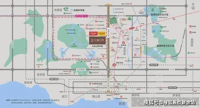 招商雍云府,位于龙华区福城街道九龙山社区龙澜大道旁,项目西侧紧挨大水坑社区公园;北侧是九龙山智能科技城,华为新基地+美团总部均集结于此;南侧靠近万科九龙山,西侧一大片区域是福城土地整备利益统筹项目,最近的4号地铁线“长湖站”距离约2.8公里。