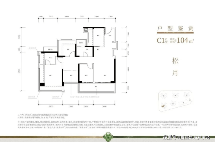 主力户型是104㎡的产品,带10.2㎡的阔景阳台,双阳台、双设备平台设计,加上主卧、书房L型阔景飘窗,户型使用率颇高。