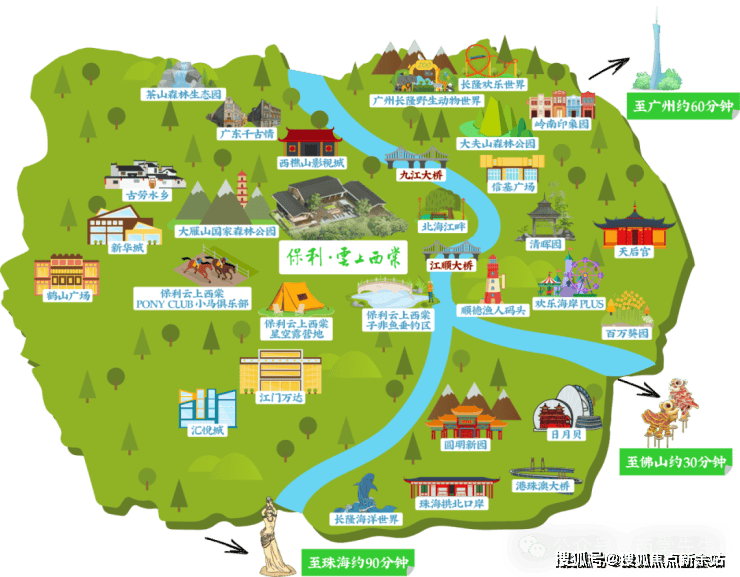 通过江顺大桥、九江大桥,约20min到达佛山信基广场;广佛江珠城轨(规划中),一站到佛山、5站到广州,融入30分钟广佛江珠生活圈,多元生活轻松享。