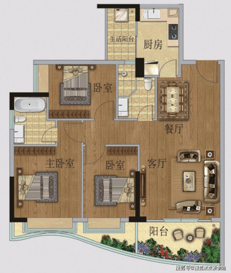 06户型【107房 3 房 2卫】环幕江景
