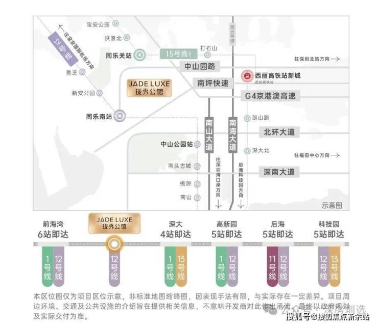 •15号线同乐关站(在建中,预计2028年12月开通),串联宝中/前海/深圳湾/西丽,也被称为深圳“一环线”,本项目为环线上的重要一环;
