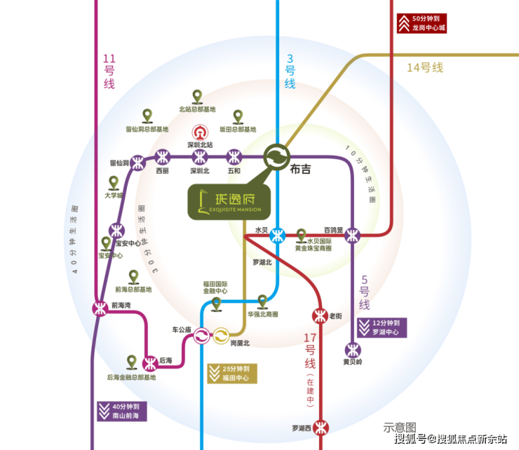 三地铁布吉站D出口,30分钟通达罗湖、福田、坂田繁华核心区, 1站罗湖北, 3站岗厦北;