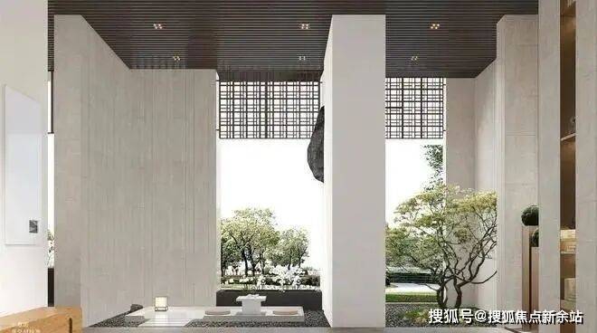 以东方雅韵为出发点,从尺度、比例、制式、材质等细节方面,将新中式建筑精髓与当代格调完美融汇于大门之中;极致挑高尺度,尽显恢弘气度